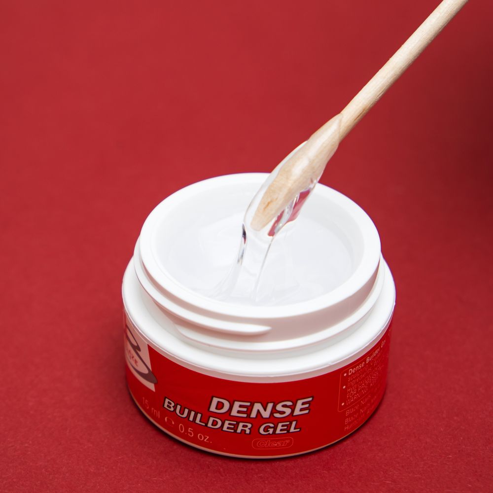 Дуже густий прозорий конструюючий гель Блейз Денс. Не текучий, швидко викладається, відмінно тримає арку, формує міцне покриття, ідеально для викладення підложки, має здатність до самовирівнювання.