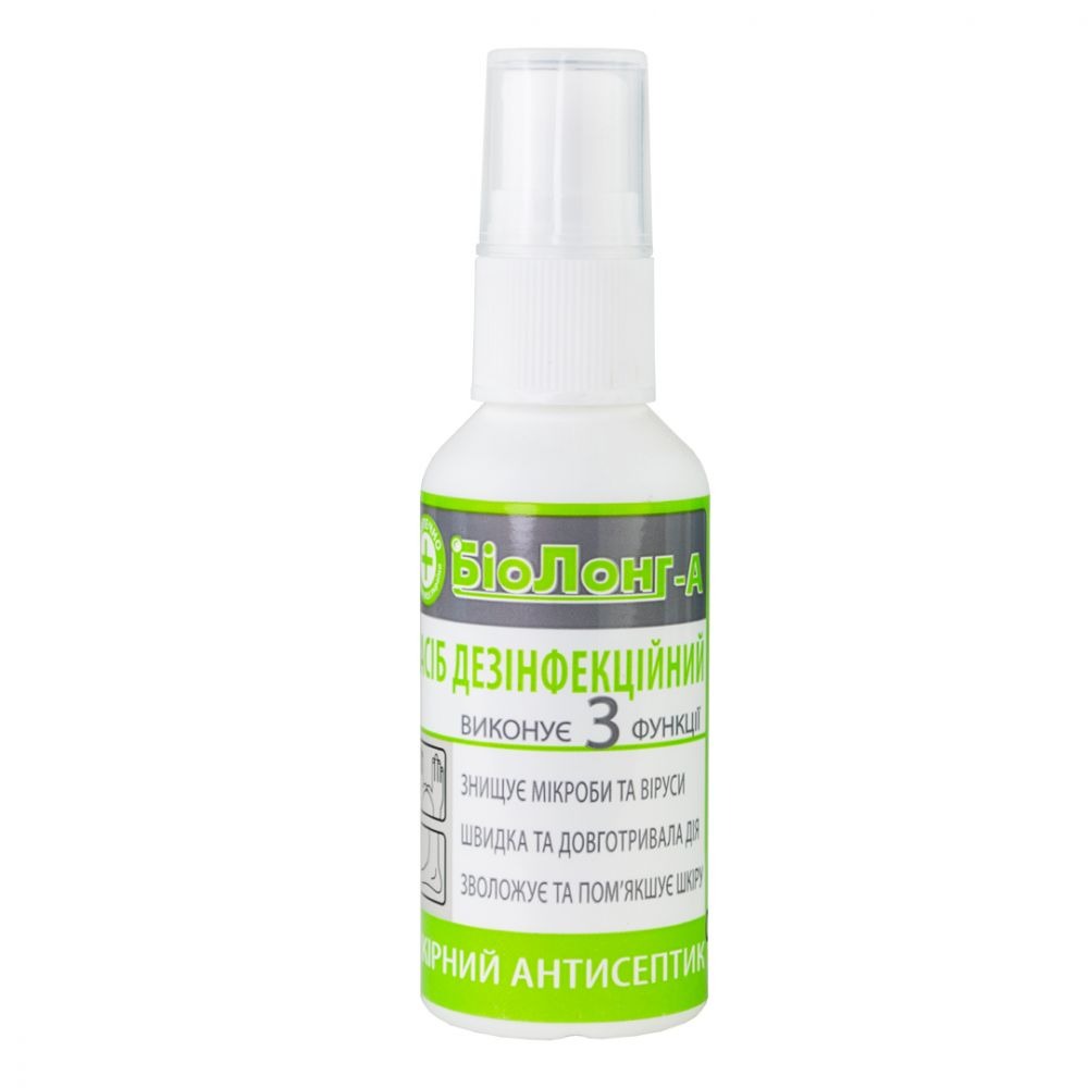 Шкірний антисептик БіоЛонг призначений для дезінфекції рук і шкірних покривів медичного персоналу, працівників косметичних салонів, перукарень, а також персоналу інших об’єктів, діяльність яких вимагає дотримання гігієнічних норм. Засіб має: