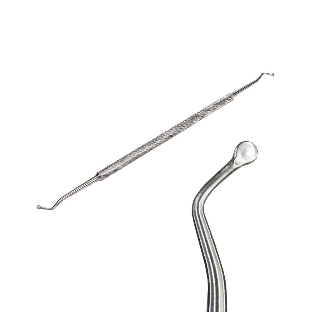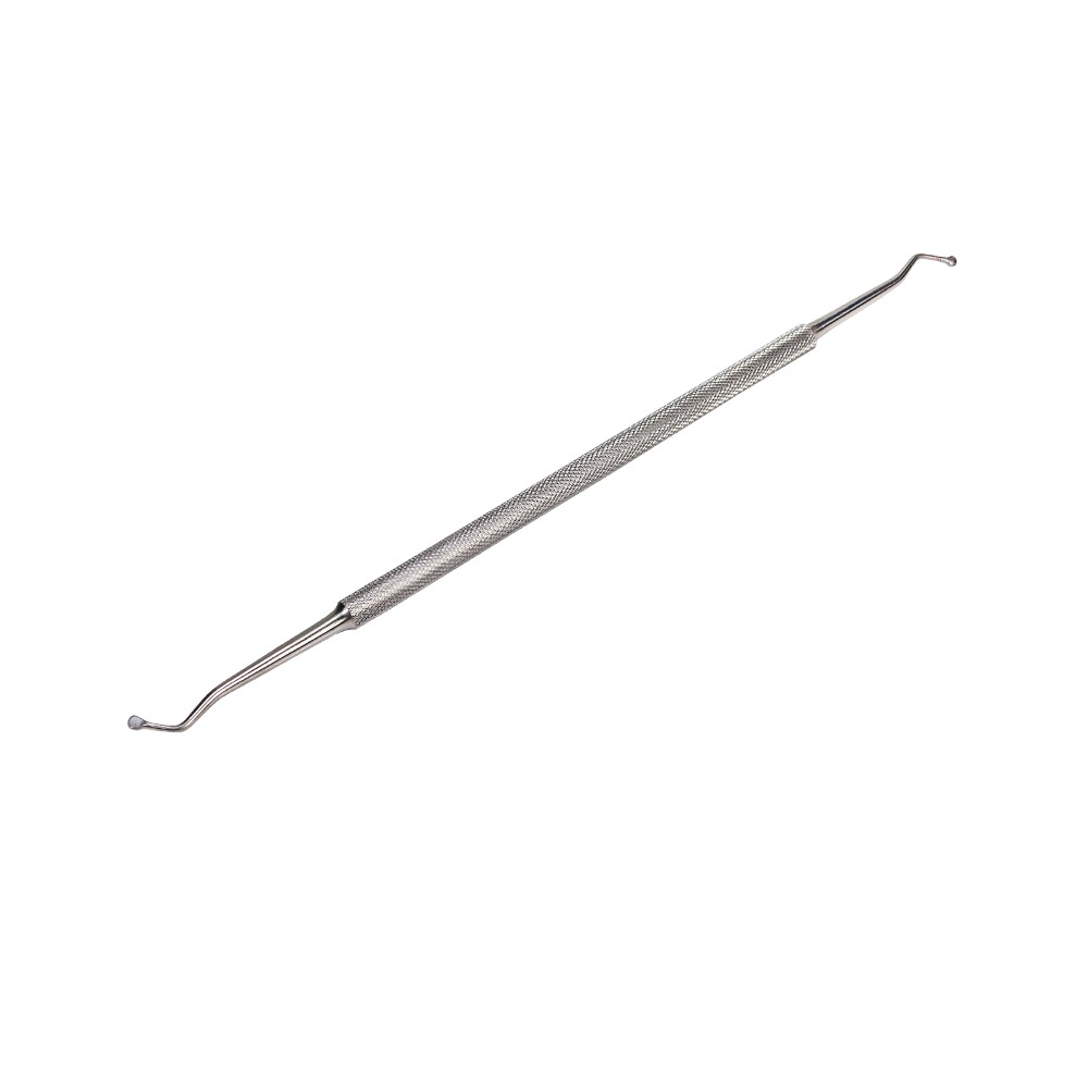 Кюретка – важный инструмент в ногтевом сервисе. Она используется в педикюре и маникюре для качественной и безопасной очистки околоногтевой зоны, зоны боковых валиков, свободного края ногтя и угловых карманов. Тонкие и закругленные наконечники кюретки позволяют работать достаточно глубоко без риска травмирования кожных покровов. Также используется как тампонодержатель.Кюретка изготовлена из медицинской стали и подлежит всем видам дезинфекции и стерилизации.