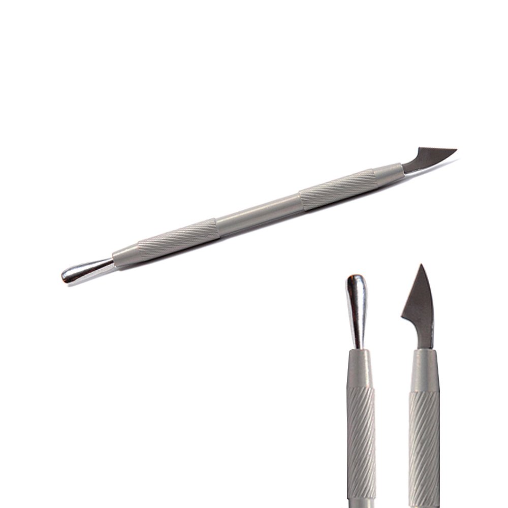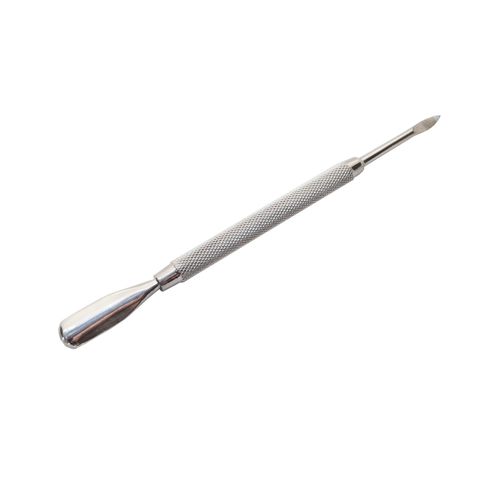 Двусторонний инструмент пушер и коготь незаменим для мастеров педикюра и маникюра. Идеальная форма лопатки позволяет, поднимая кутикулу, мягко и бережно очистить ногтевую пластину от птеригия. Другой наконечник в виде когтя обеспечивает качественную очистку околоногтевой зоны, зоны боковых валиков, свободного края ногтя и угловых карманов. Лопатка с когтем изготовлена из медицинской стали и подлежит всем видам дезинфекции и стерилизации.