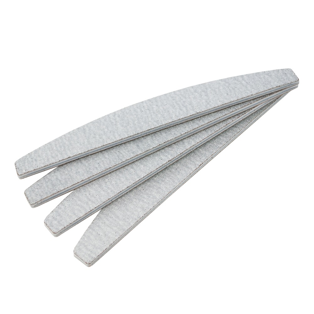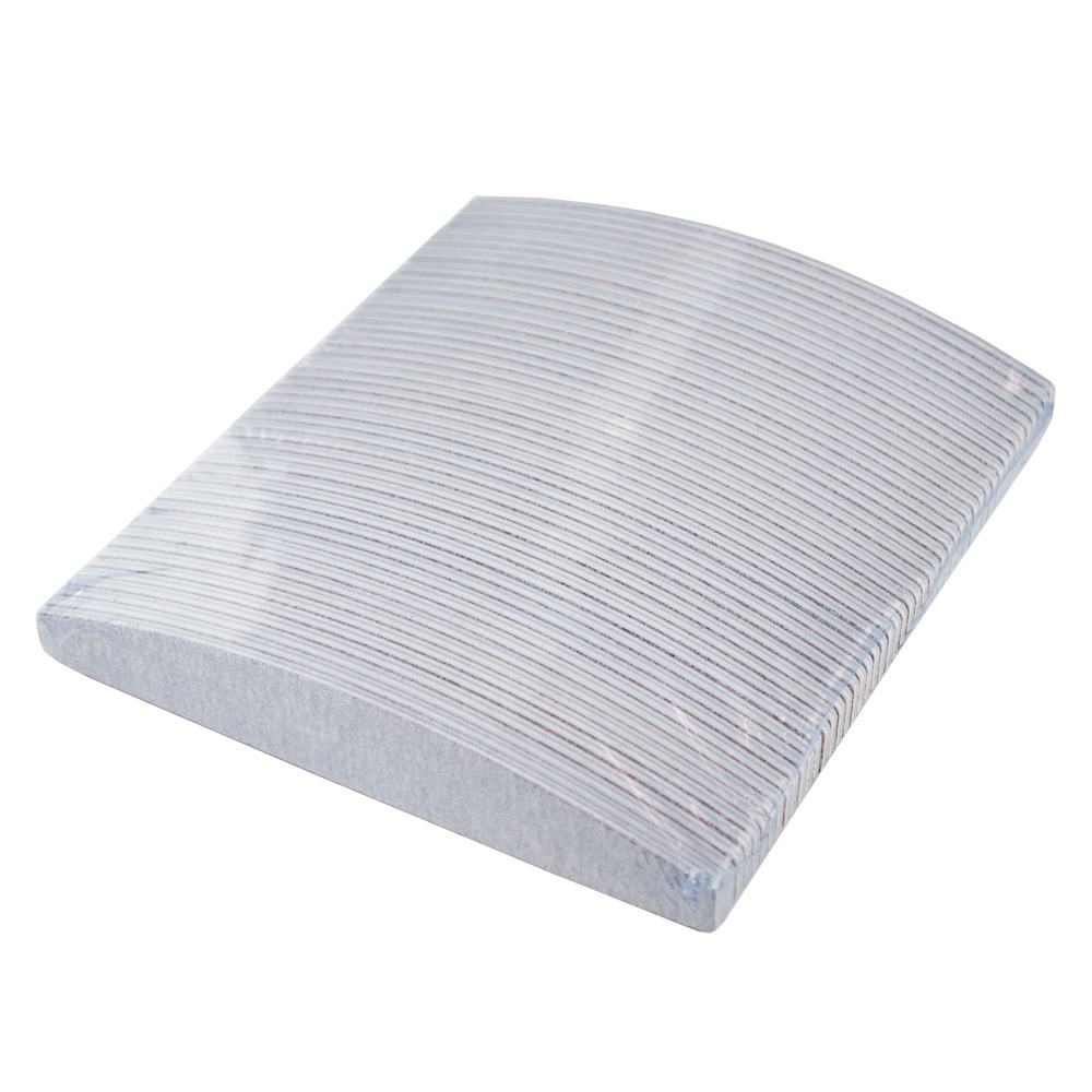• Набір 50 шт, ціна 1 шт у наборі: 15.30 грн Популярна і улюблена багатьма майстринями манікюру пилка для нігтів у формі купола. На полімерну основу товщиною 4 мм з одного боку нанесений доволі грубий абразив 100 гріт, з іншого - 180 гріт (дрібніше середнього), що робить пилку універсальним інструментом в манікюрі, педикюрі, роботі з гель-лаком і нарощуванні нігтів.