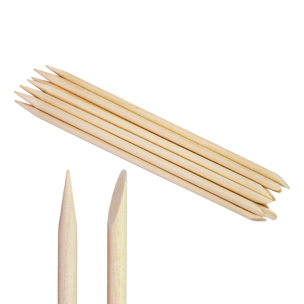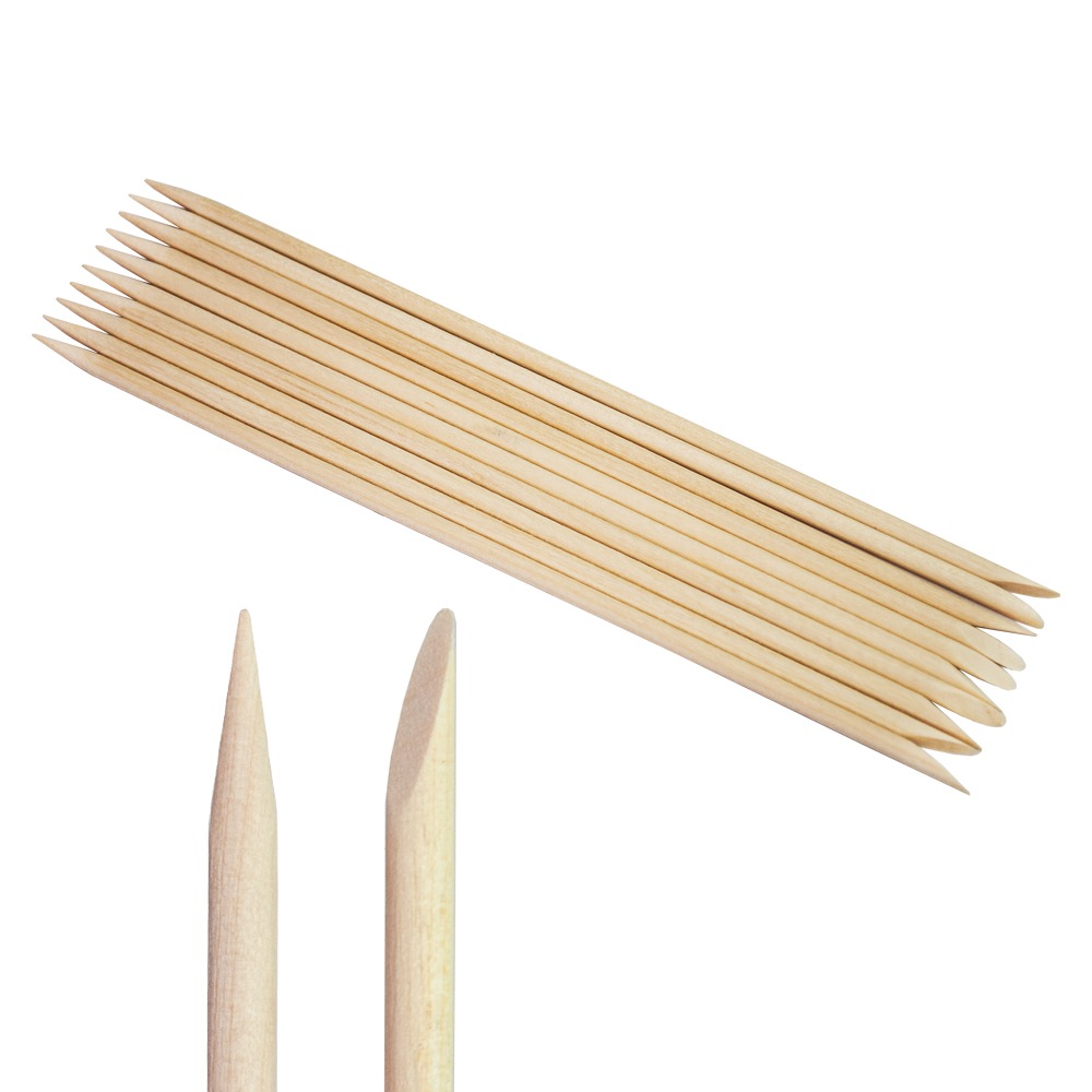 • Апельсинові палички - необхідний аксесуар майстра манікюру. Дерев'яні палички застосовуються для безпечного відсунення кутикули, очищення птеригію, зняття гель-лаку, видалення бруду, а також при моделюванні і дизайні нігтів. Довжина паличок 12 см, в наборі 10 шт.