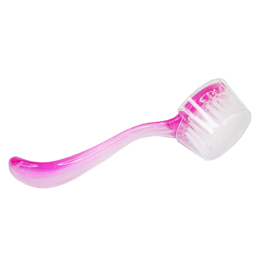 Щіточка для видалення пилу і опіла з верхнім хватом. Добре фіксується на пальцях, відмінно очищає від пилу всі зони нігтя. Ворс синтетичний, середньої жорсткості. Розмір щітки: 82х40х27 мм.