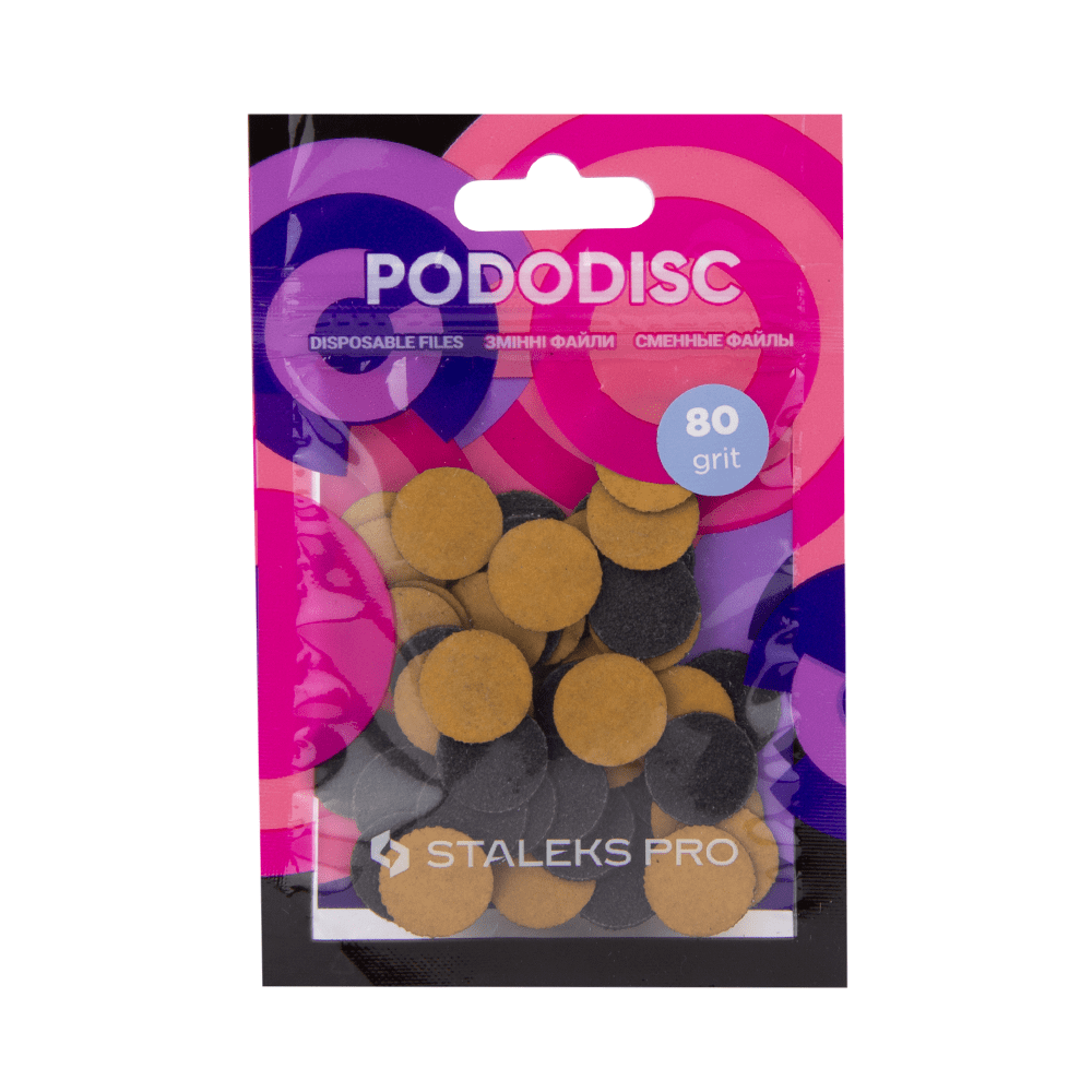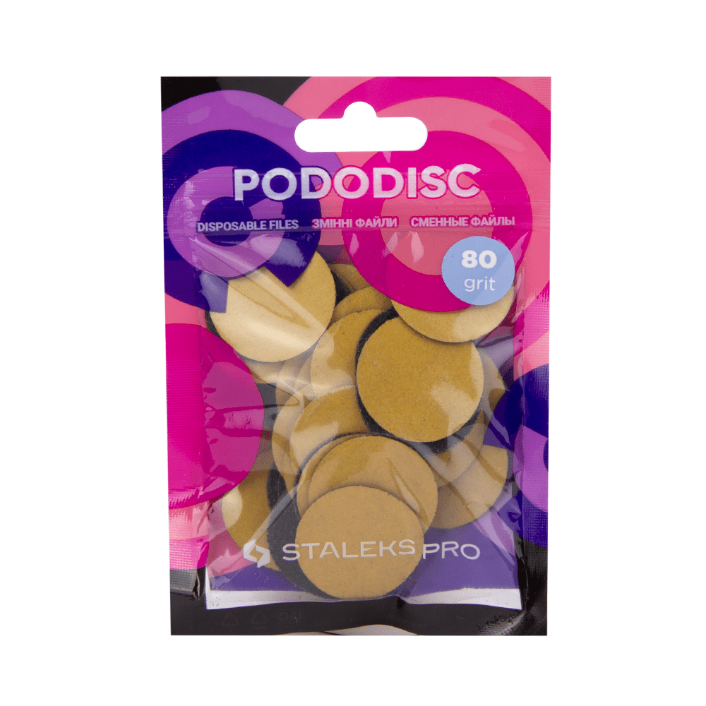 Змінні файли для педикюрного диска на тонкій спонжевій основі 1 мм завтовшки. Діаметр: 20 мм Абразив: 80 гріт, грубий, жорсткий Кількість файлів у наборі: 50 шт