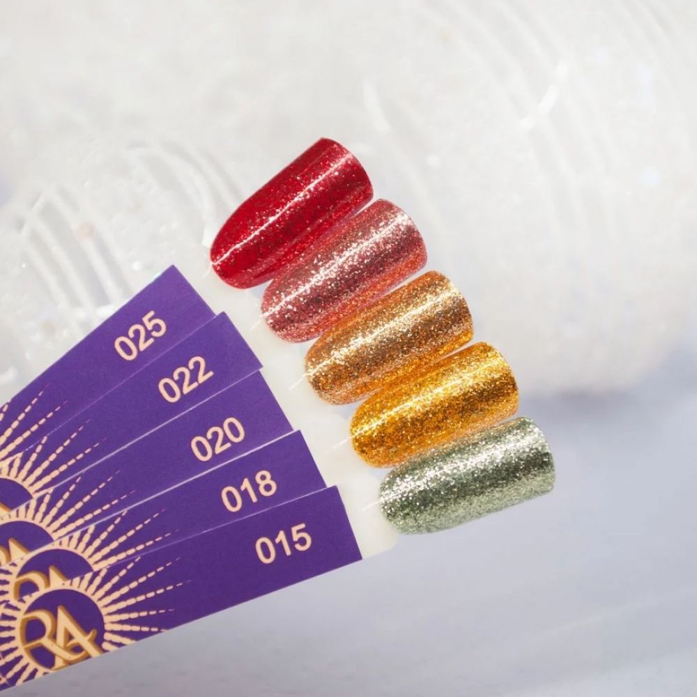 • Пекучий чилі. Високопігментований гель-лак із сяючим шимером та глітером. Рекомендовано нанесення в 2 шари.