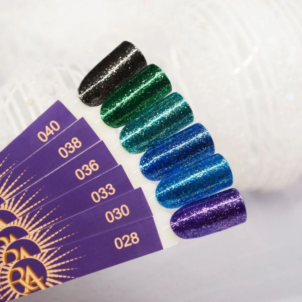 • Глибока синь. Високопігментований гель-лак із сяючим шимером та глітером. Рекомендовано нанесення в 2 шари.