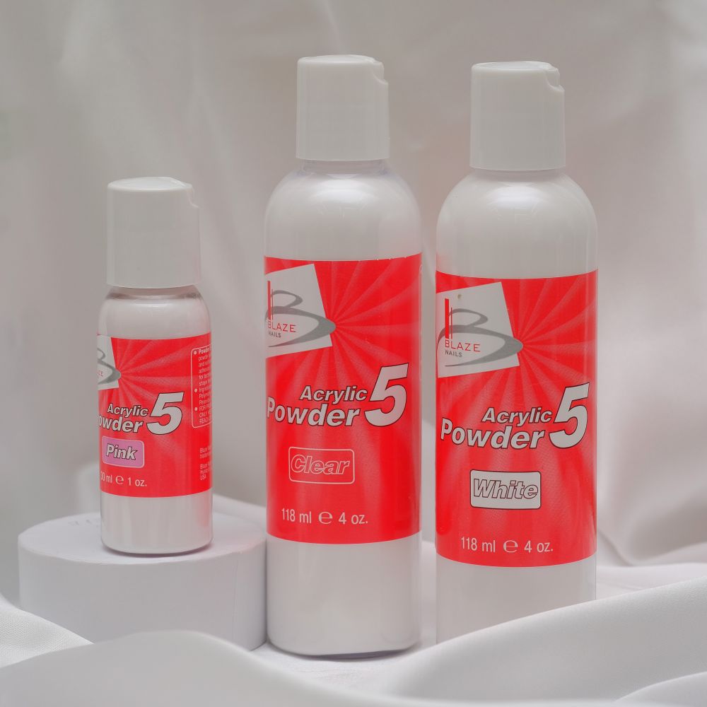 • BLAZE Powder 5 – акрилова пудра / середня швидкість полімеризації, Clear, 118 мл